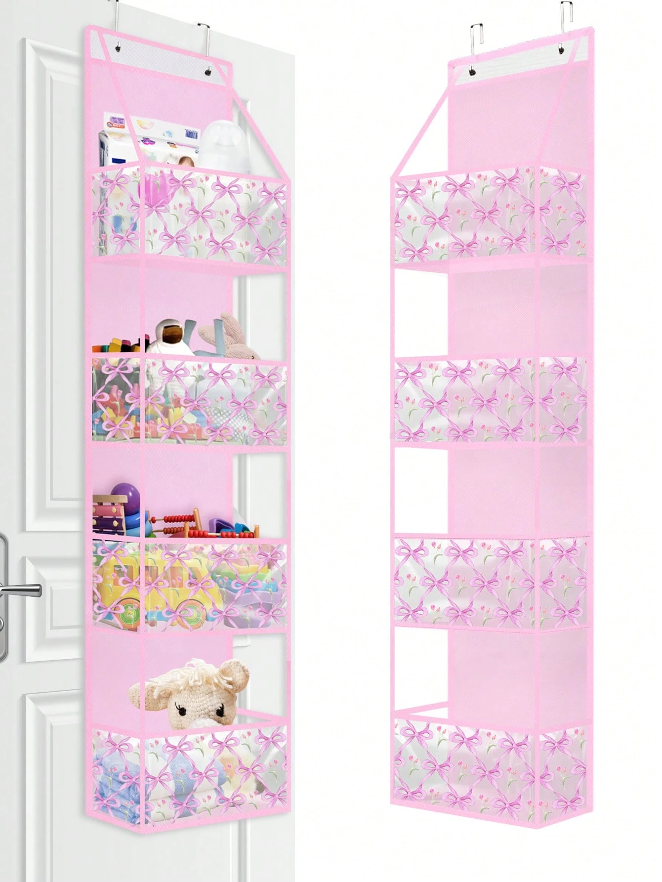 Oaoleer 2PCS Tulip Pattern Over The Door Organizer Storage,4 Shelf Tulip Pattern Swing-Proof Behind Door Organizers With Metal Hooks,Closet Hanging Organizer With 4 Large Clear Pocket For Baby Bedroom,Bathroom,Pantry, Nursery Newborn Baby Essential Stuff Dorm Room Essentials