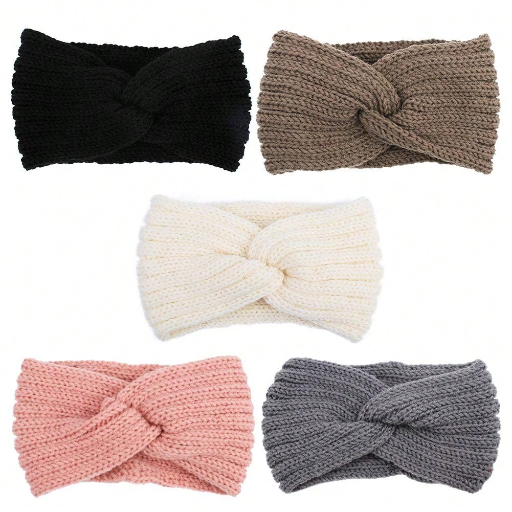 Oaoleer 5PCS Knit Wide Headband For Winter 5 Pieces Women Ear Warmers Truban Headbands Thick Headbands For Women Girls, Black Gray White Pink Brown