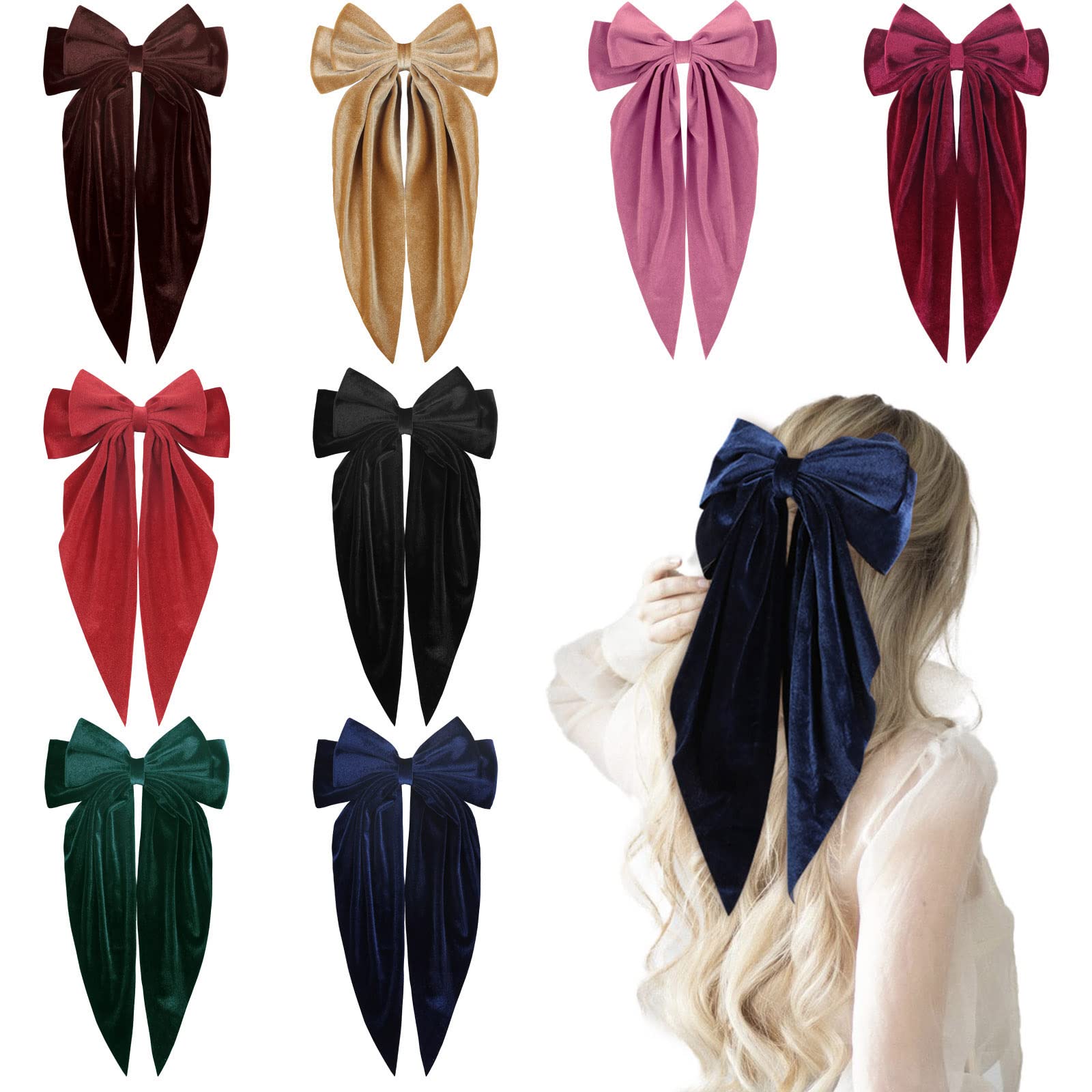 Be the first to review “Oaoleer 8Pcs 5″ Big Pearl Velvet Satin Layered Hair Bows For Women Girls Barrette Hair Clip Long Black Ribbon Bows French Style Hair Accessories” Cancel reply