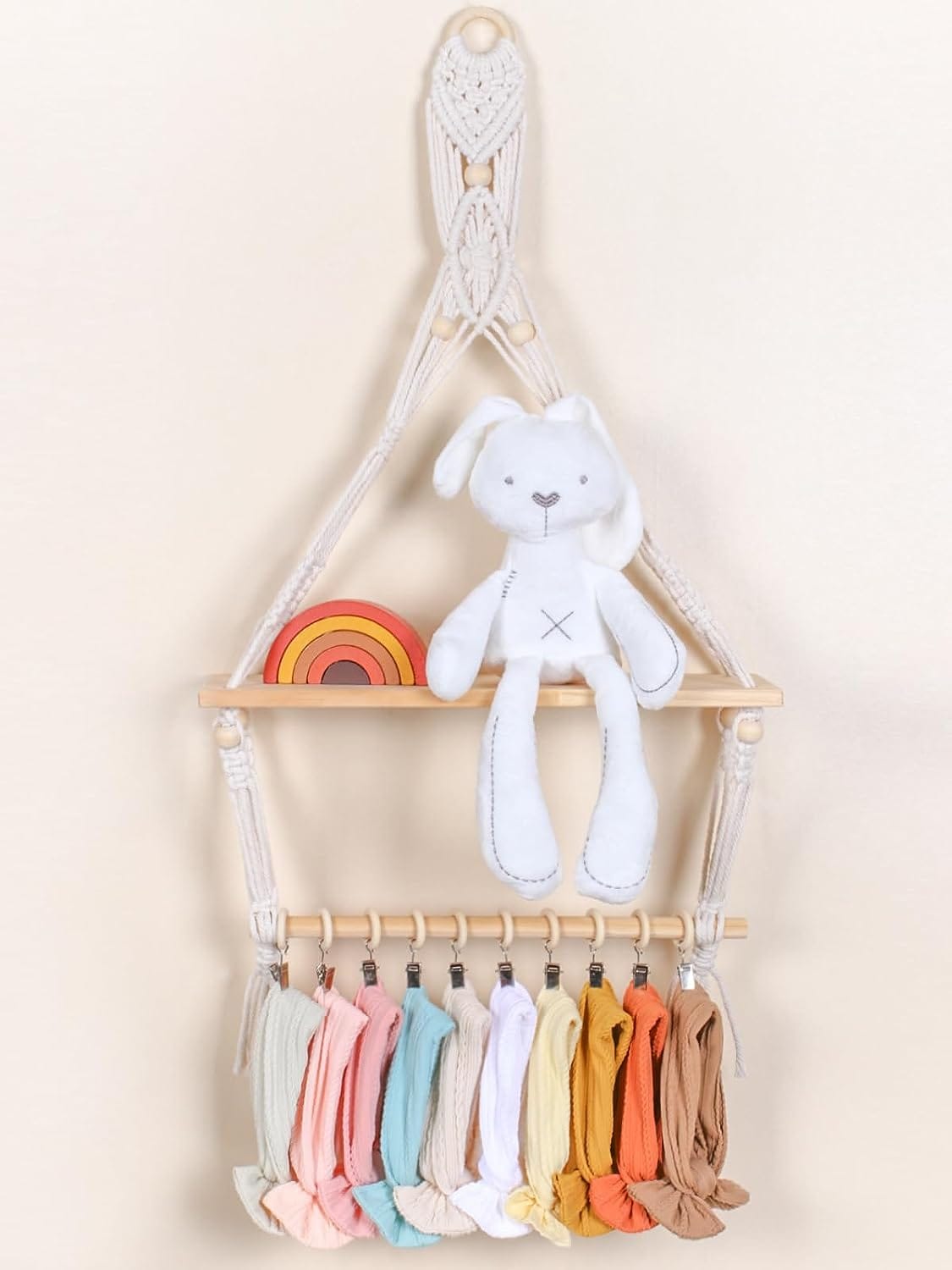 Oaoleer Macrame Hanging Shelves for Nursery for Nursery,Boho Baby Headband Holder Organizer Rope Decor Wall Hanging Decor for Toddler Girls Room