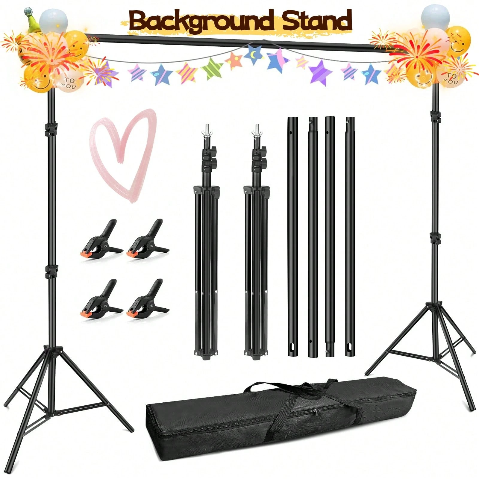 Photography Studio Background Stand,Wedding Backdrop Stand,Adjustable Metal Backdrop Stand With 4 Crossbars,4 Backdrop Clamps Suitable For Group Photos,Bachelor Parties,Events Decoration,Suitable For Holiday Background Decoration Such As Christmas, Valentine’s Day, Birthday Parties, Back To School Parties, Etc