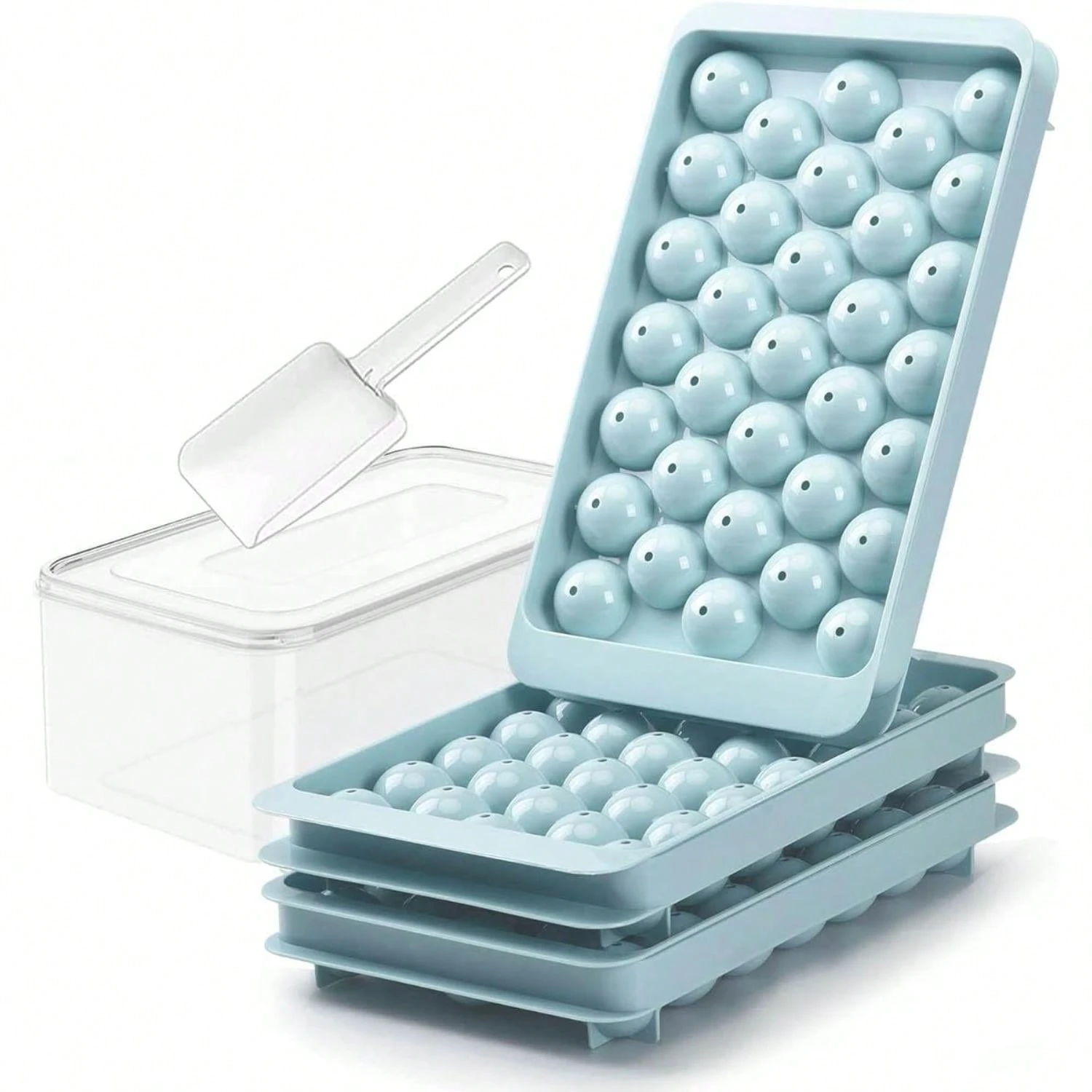 Round Ice Cube Trays 3 Pack,Ice Ball Maker Mold With Lid & XXXL Bin, Ice Trays For Freezer With 306 OZ Container Mini Circle Ice Mold Making Sphere Chilling Cocktail Whiskey Coffee