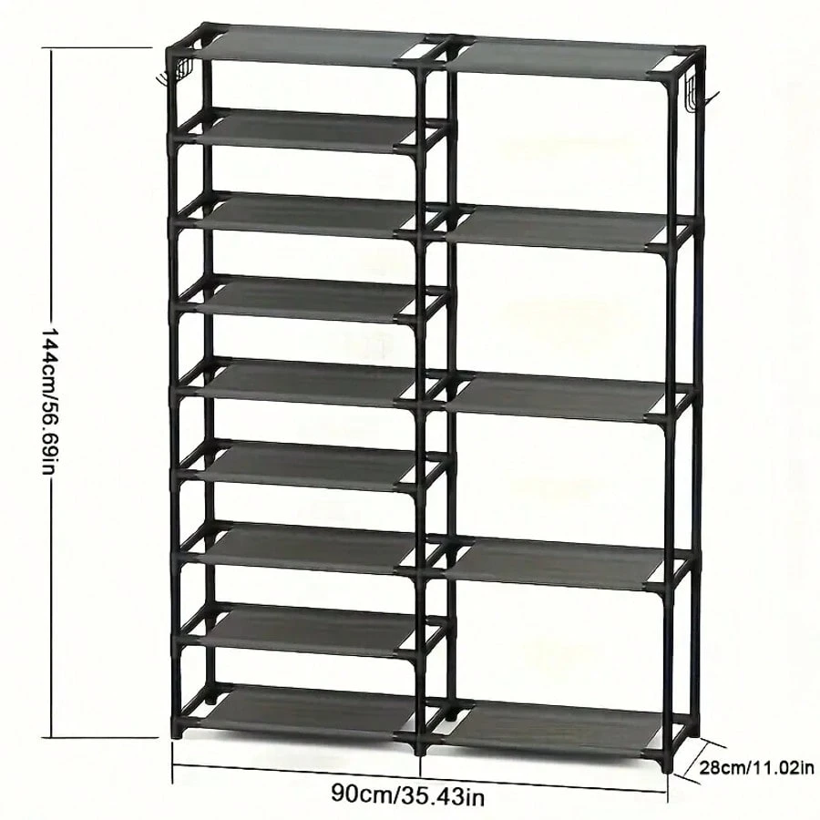 TAIMASI 1pc 9 Tier Tall Shoe Rack, Garage Shoe Rack Large Capacity, Shoe Rack Organizer, Vertical Free Standing Shoe Rack, Heavy Duty Boot Rack, Two Rows Of Multifunctional Hooks