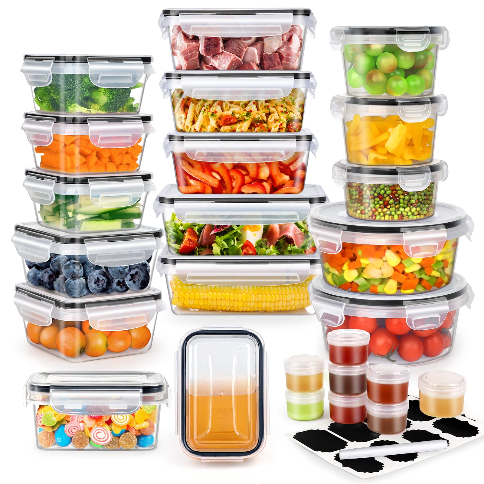 TAIMASI 25 Packs Food Storage Containers With Lids Airtight, Plastic Lunch Containers For Pantry Kitchen Organization Storage (25 Lids + 25 Containers)