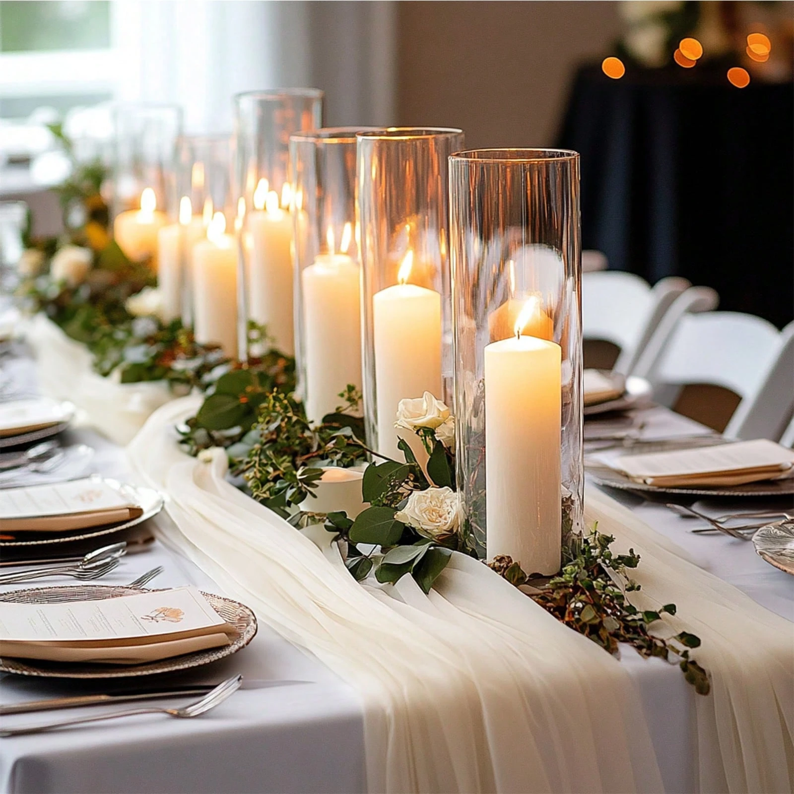 Tomnk 20/35/50pcs Clear Glass Cylinder Vases Set, 5 Sizes Tall Votive Candle Holder, Hurricane Vase For Floating Candles & Flowers, Festive Table Decor For Wedding, Party, Holiday Home Decorations