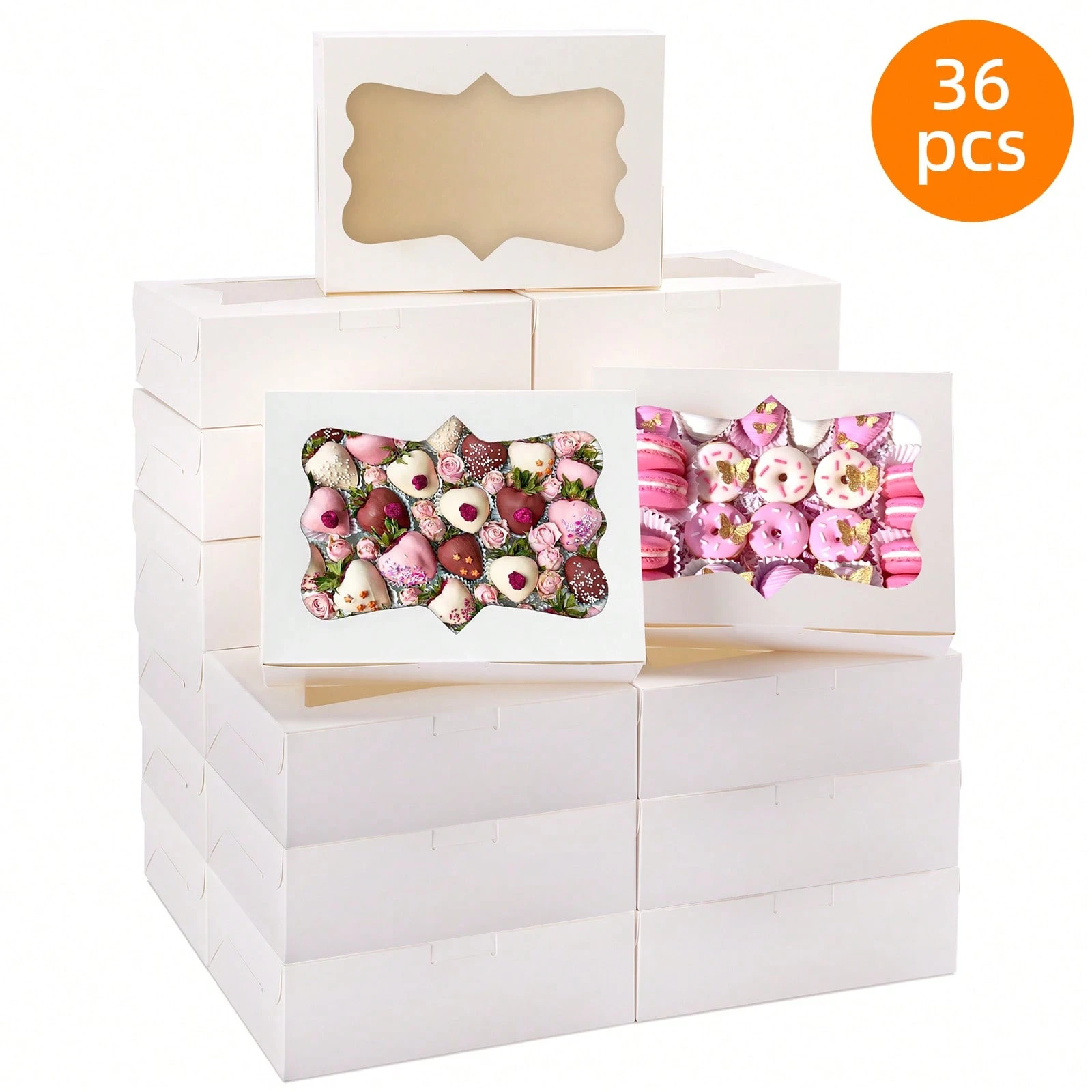 Tomnk 36/72pcs Clear Window Bakery Boxes, 12x8x2.5 Inches Cookie Boxes, Display Cookie, Pastry, Donut, Cake & Chocolate Strawberry Gift Boxes For Desserts