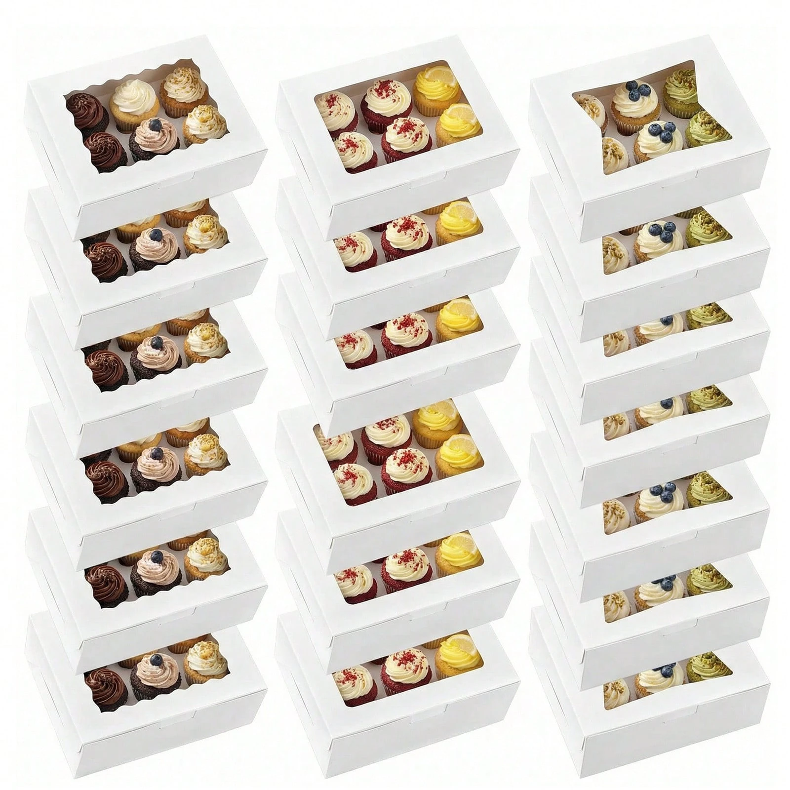 Tomnk 48pcs Cookie Boxes, 8x6x2.5 Inches, Treat Boxes With 3 Style Window, For Chocolate Strawberries Muffins Donuts And Party Favor, White/Brown