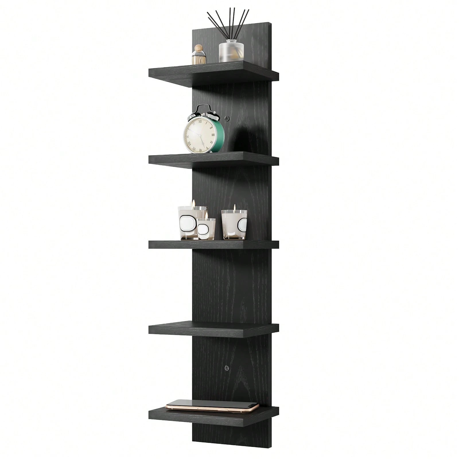 Tomnk 5-Tier Floating Wall Shelf, Wall Decor, Versatile Storage & Display, Sleek Space-Saving Display & Storage Rack, For Bedroom, Living Room, Office