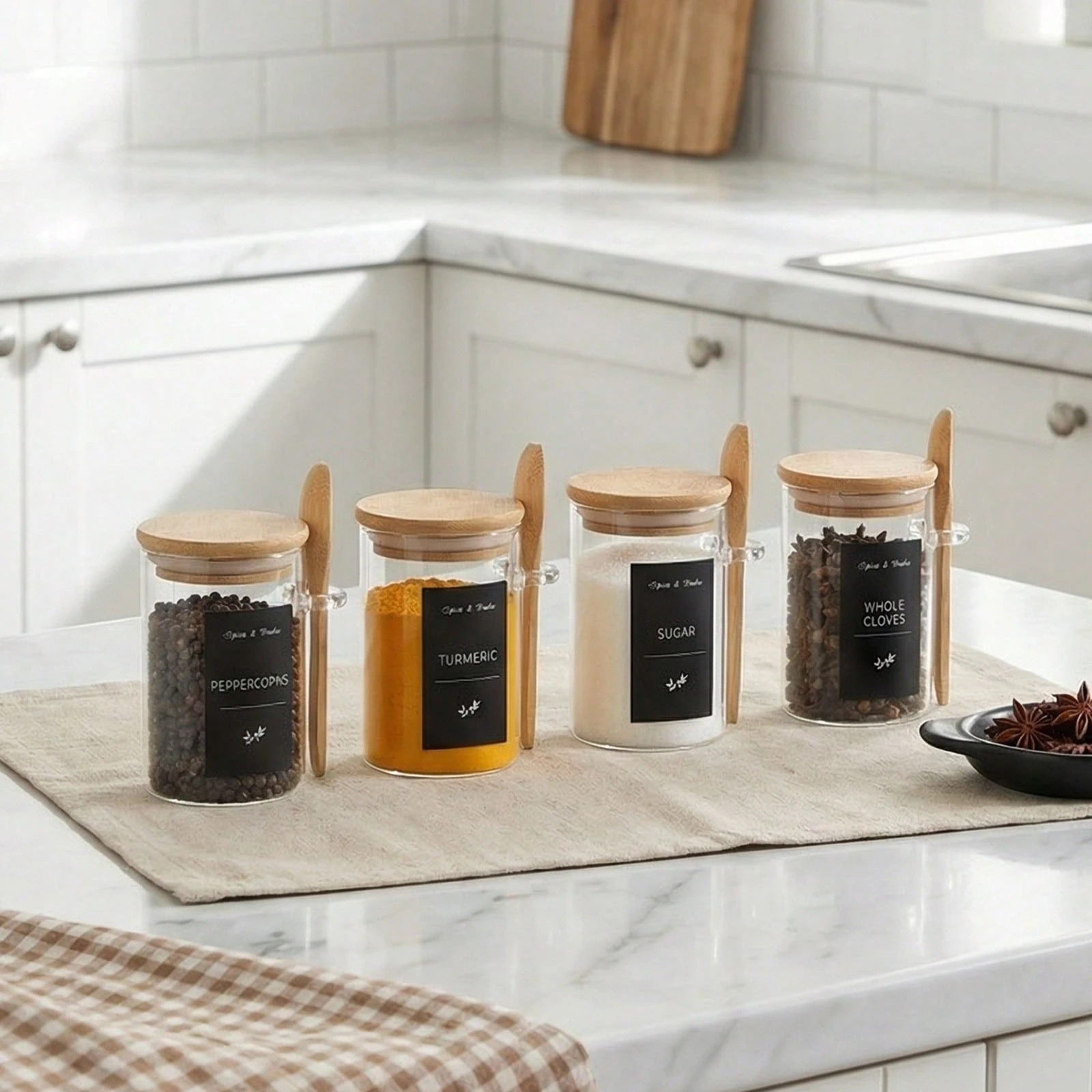 Tomnk 6/12 8oz Round Glass Airtight Jars With Bamboo Lids And Spoons,Reusable Storage For Spices, Herbs, Snacks, Tea, Kitchen Pantry Countertop Organization