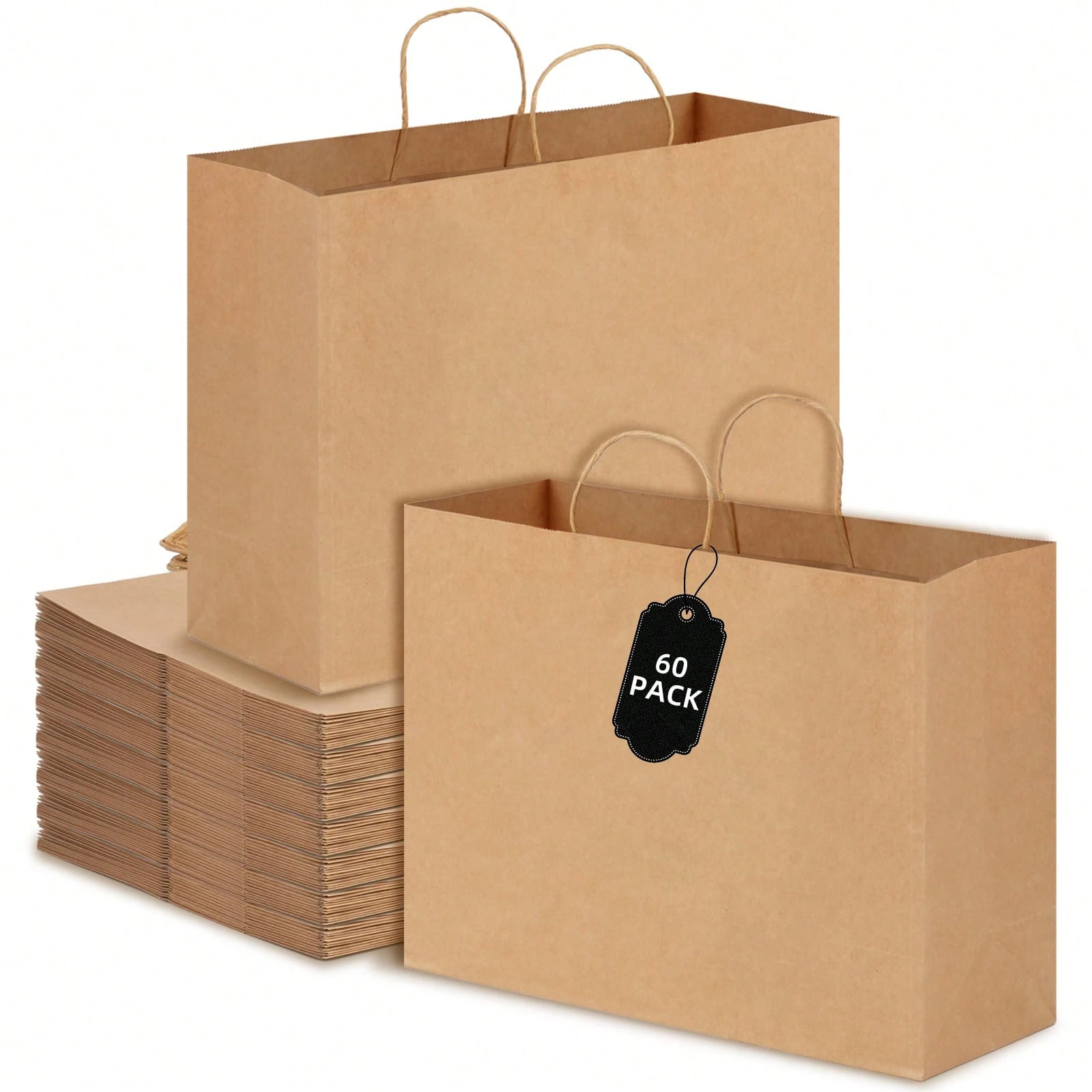 Tomnk 60/110pcs 16x6x12 Inch Large Paper Bags With Handles, Kraft Paper Gift Bags For Business, Merchandise, Gifts, Shopping, Retail Stores, Birthday Party, Brown/Black