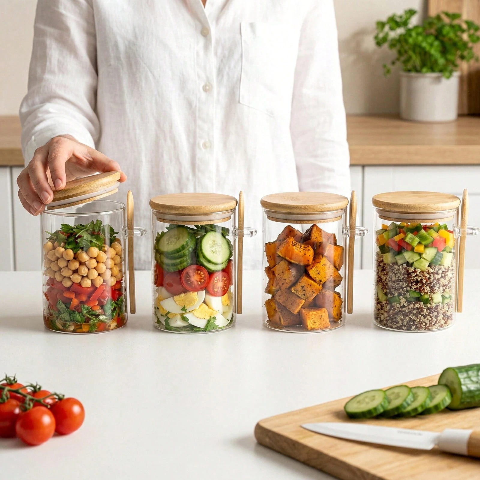 Be the first to review “Tomnk 8pcs 16oz Round Glass-Sealed Bamboo Press Lids With Spoons,8 Pcs 16oz Round Glass Jars With Bamboo Press Lids & Spoons, Airtight Storage Containers For Spices, Snacks, Cereals, Kitchen Pantry & Countertop” Cancel reply