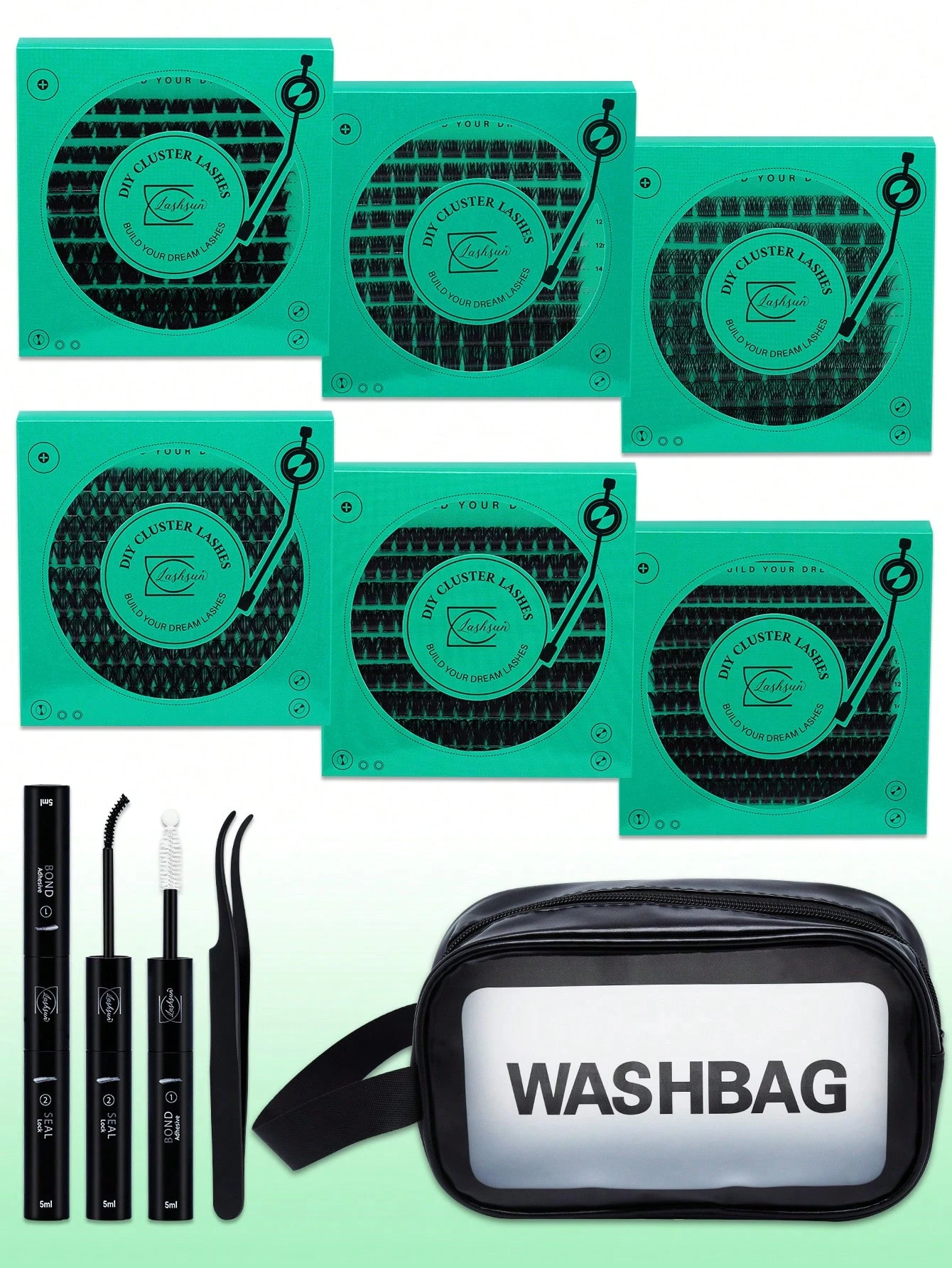 Travel CLuster Lashes Kit, 900PCS 6 Styles D Curl Lash Clusters Mixed 10-16mm Individual Lashes Clusters Soft And Comfortable False Eyelashes Kit With Waterproof Travel Cosmetic Bag, BOND&SEAL And Tweezers For DIY At Home&Dates&Party&Travel Makeup