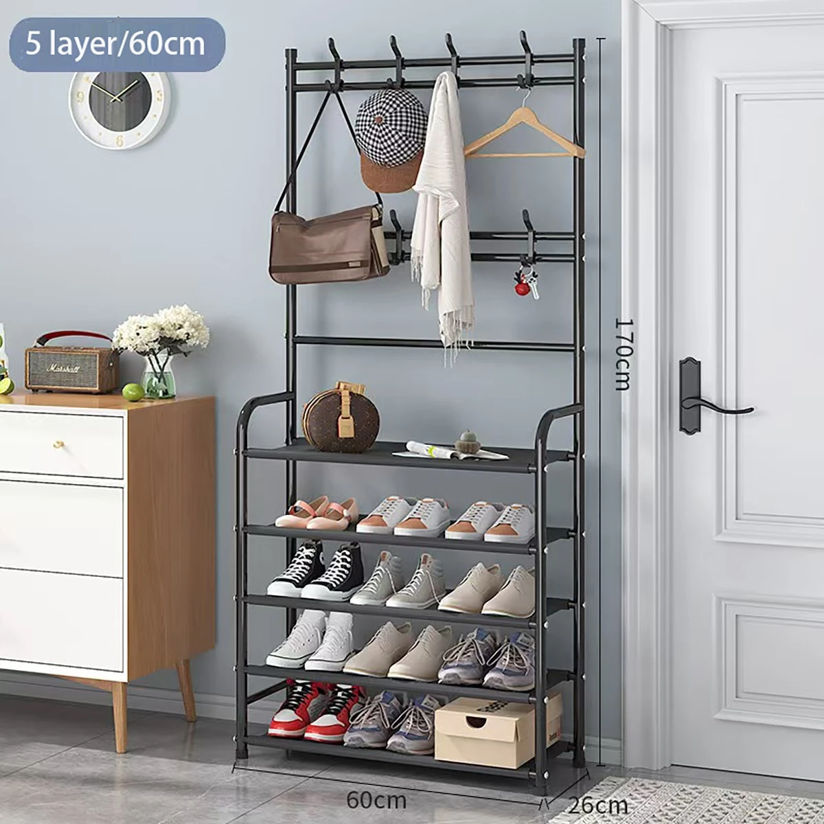 Upgrade Metal 4/5 Tier Storage Shelf,Floor-Standing Coat And Shoe Rack 23.6 Inch Wide Hallway Shoe Rack,Entryway Coat Rack,Living Room, Bathroom, Hallway Shoe Organize