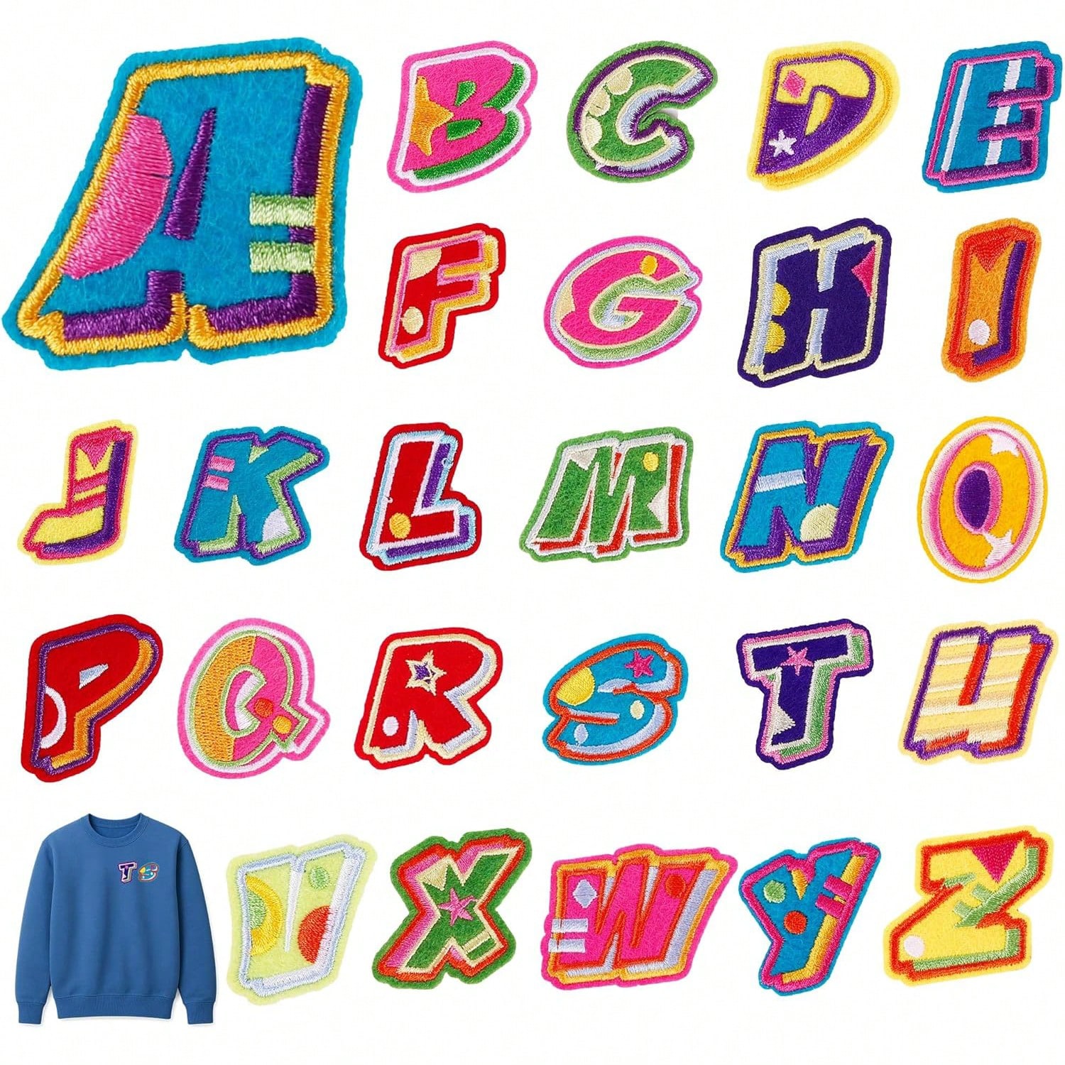 Vibrant Retro Letter Patches Iron On For Kids 26 Pcs A-Z Embroidered Alphabet Felt Name Initial Patch For Backpack, Sew On Fabric Letters Heat Press Appliques For Hats Jackets DIY Decor