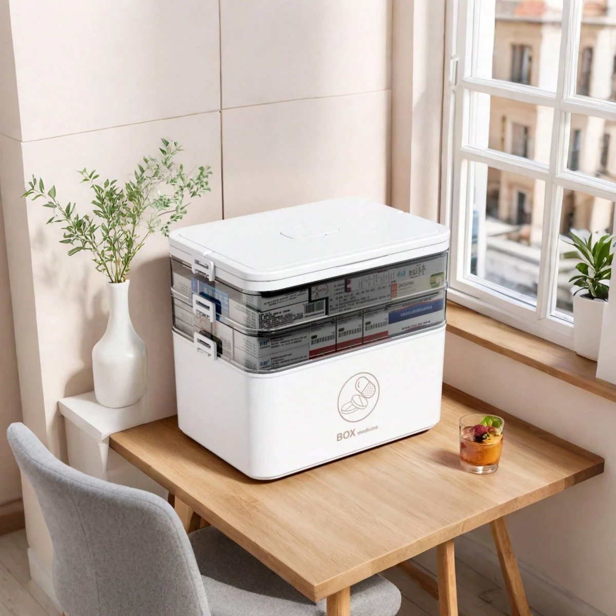 Waterproof Multi-Layer Medicine Storage Box – Portable Family Emergency Organizer With Snap Closure, Made Of Durable Plastic, Large Rectangular Home Medicine Cabinet With Multiple Compartments, Carrying Case For Family Emergency First Aid Kit, Three-Layer Medicine Storage Container With Flip-Top Lid – Large Family Emergency Organizer, Snap Closure, Durable Plastic, Multi-Layer Waterproof Box, Storage Boxes For Organizing