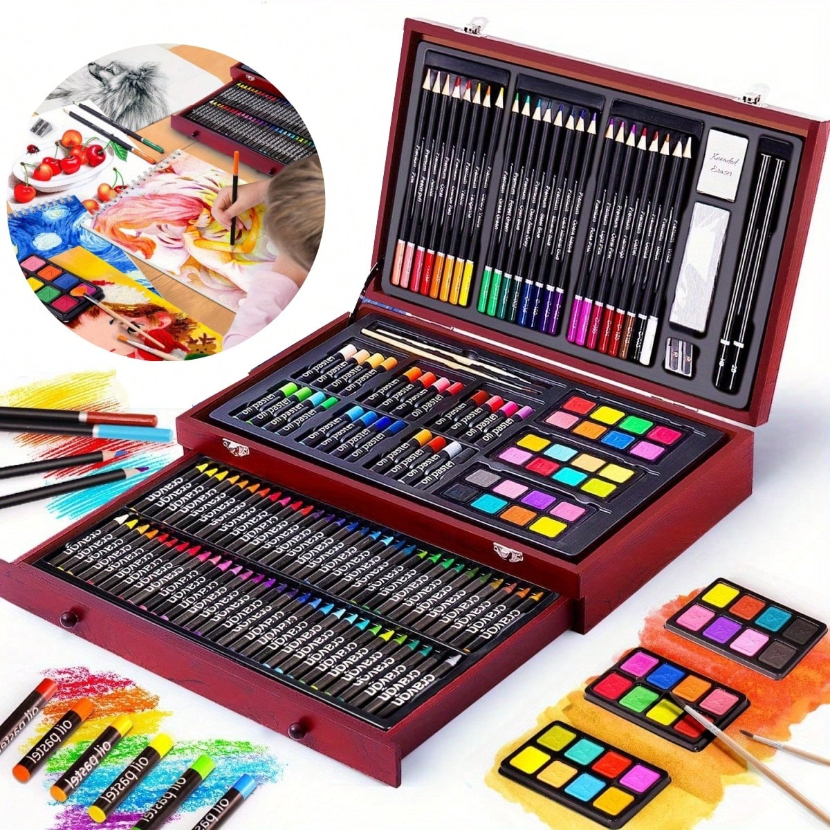 Wooden Box Painting Set-140pcs Deluxe Art Set – Crayons, Acrylic Paints, Colored Pencils Set In Wooden Case, Professional Art Kit For Adults, Artist And Teens, Paint Supplies, Gift